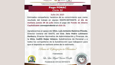 Trabajadores del ISSSTE recibirán el FONAC este jueves 29 de julio