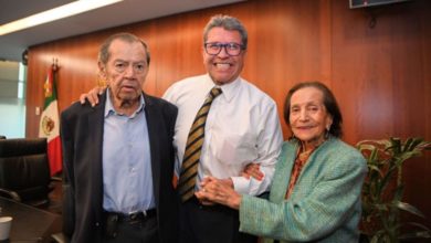 Recibe Monreal a Ifigenia Martínez Hernández y Porfirio Muñoz Ledo, “una conversación de lucidez e historia”
